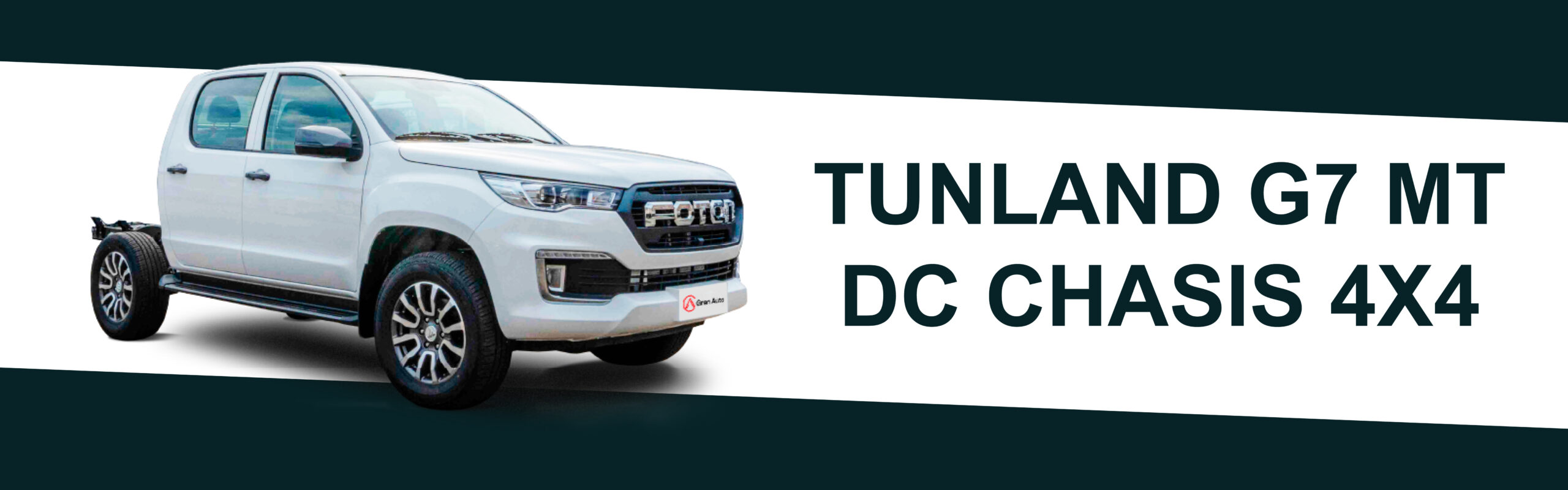 La nueva Tunland G7 Doble Cabina Chasis 4x4 es la combinación perfecta de robustez, versatilidad y confort. Con su motor Aucan turbo Diesel de 2.000 cc, genera 161 caballos de potencia y 390 Nm de torque, ideal para los trabajos más exigentes y terrenos difíciles.